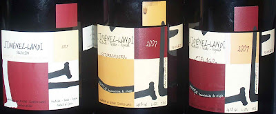 Uma das surpresas de que falo são as Bodegas Jiménez-Landi, uma pequena adega familiar situada em Méntrida, terra de ampla história vitivinícola que dá nome à denominação de origem do noroeste da província de Toledo. A D.O. Méntrida onde a Garnacha é rainha, é caracterizada pelos solos arenosos de origem granítica, ácidos e pobres em matéria orgânica. Com um clima continental mediterrâneo extremo, longos e frios Invernos, embora protegidos dos ventos frios do norte e do oeste pela barreira montanhosa de Gredos. O Verão é quente e com baixa precipitação, cerca de 350 mm. anuais, concentrados no Outono e na Primavera.Bodegas Jimenez-Landi, é um recente projecto familiar que arrancou em 2004, conduzido por dois primos; José Benavides Jiménez - Landi (gerente) e Daniel Gómez Jiménez - Landi (enólogo), com o objectivo de elaborar vinhos com base numa filosofia de respeito pelo meio ambiente, tradição e equilíbrio com o que nos rodeia. Esta mesma convicção de que a natureza oferece o que tem de melhor quando se cultiva com respeito, faz com que nas 3 propriedades que fazem parte deste projecto, se trabalhe o vinhedo ecológico com as "armas" da biodinâmica. Segundo os responsáveis, desta maneira os resultados obtidos, expressam as características do solo, do clima, da terra e do céu.