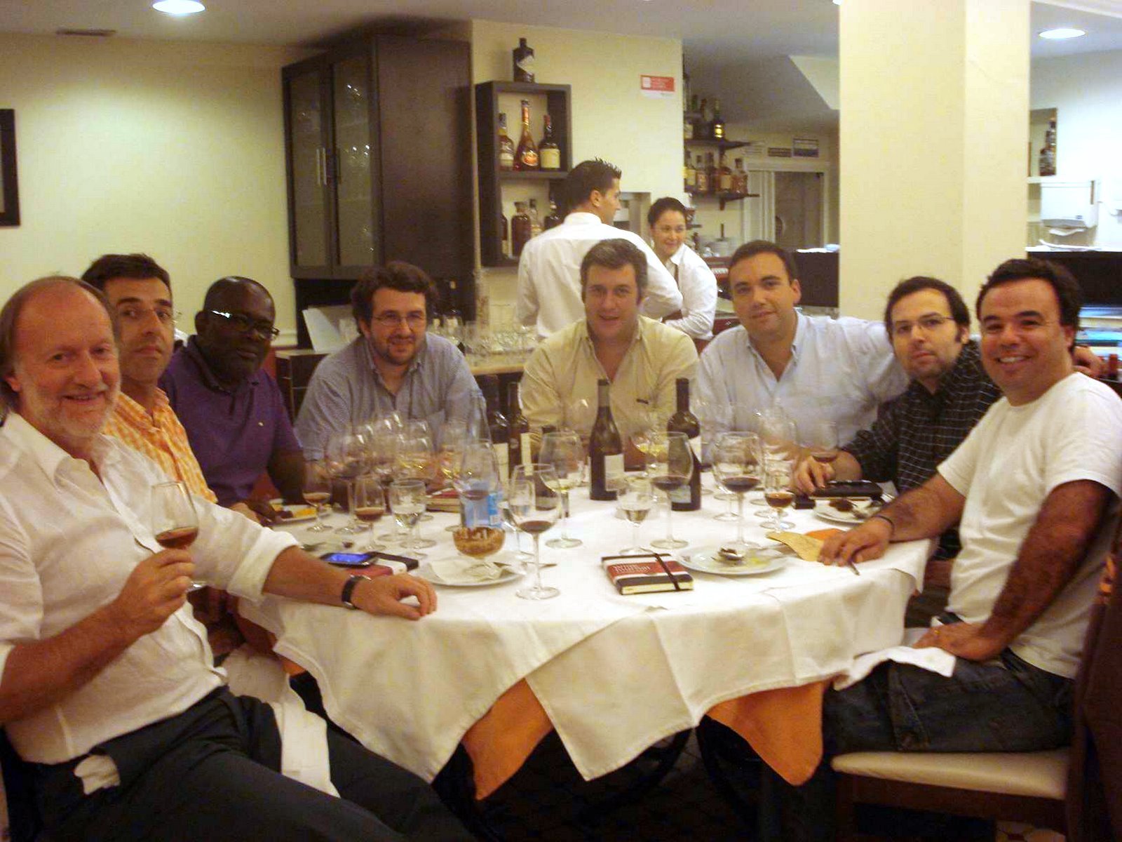 Desde o conceituado enólogo, passando pelo famoso chefe de cozinha ou pelos bloggers... todos eles enófilos puros e duros, verdadeiros homens da luta que se juntaram para mais uma memorável jornada, mais não fosse pelo convívio, que o vinho é quase sempre a melhor desculpa que se encontra para tal. Junte-se a tudo isto uma mesa farta de iguarias muito bem servidas pelo Salsa&Coentros ali perto dos Bombeiros de Alvalade, e quase duas mãos cheias de vinho.
